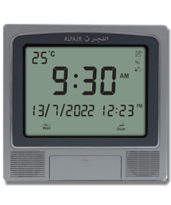 Les temps adhan de plus de 250 villes sont stockés dans l’horloge, un numéro de code et la valeur de l’information sont affichés après les prières.